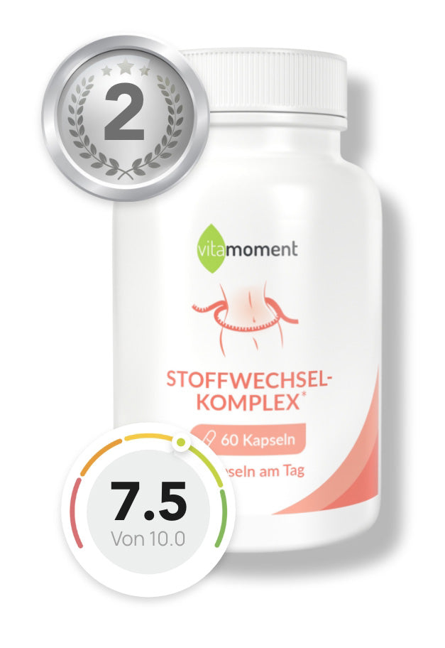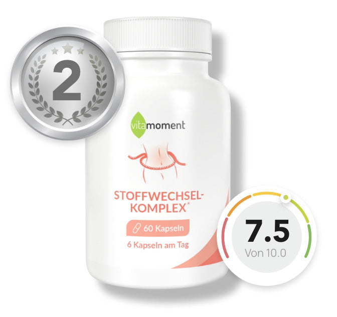 Der “Stoffwechsel-Komplex” von VitaMoment schneidet in unserem Produktvergleich als Zweitplatzierter ab. Die fehlenden B-Vitamine und Bitterstoffe sieht unsere Redaktion als größtes Manko dieses Produkts.